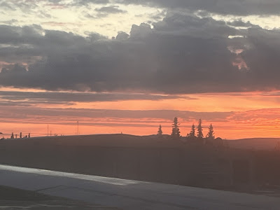 Rick dropped me off at 5 pm, and I was crammed neatly in my seat and on my way to Seattle by 7:20. It was a quiet flight. Nobody really spoke. I alternated between reading a Stephanie Plum novel and watching the scenery slowly green up through my tiny window.